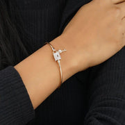 14K SOLID GOLD PEAR AND ROUND DIAMOND BANGLE BRACELET