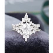 PEAR CUT WHITE GOLD ART DECO CURVED BAND ANNIVERSARY MOISSANITE ENGAGEMENT RING BRIDAL SET