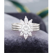 3PCS FLOWER SHAPE ROSE GOLD MILGRAIN MARQUISE WEDDING BRIDAL MOISSANITE RING SET