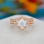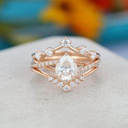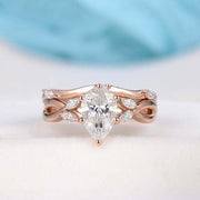 3PCS PEAR CUT ROSE GOLD WEDDING BRIDAL MOISSANITE ENGAGEMENT RING SET WITH MATCHING BAND