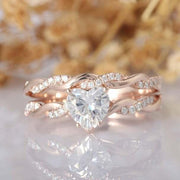 6.50MM HEART SHAPE 1CT TWISTED BAND MOISSANITE BRIDAL WEDDING RING SET