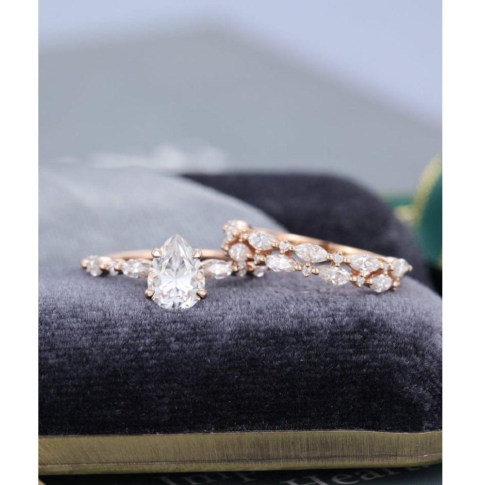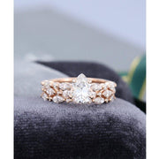 0.75CT PEAR CUT ROSE GOLD VINTAGE HALF ETERNITY WEDDING BAND MOISSANITE ENGAGEMENT RING