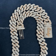 It depends on customer requirements. Generally people want 925 silver with gold plated iced out chain or White gold chain.