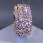 This is a wide 4 Band Moissanite Ring set with many brilliant cut Moissanite in two sizes (5.45ct total). This ring does not only look beautiful, the 2 bands in the middle can even be moved! This ring is perfect who like big wide rings and like special quality craftsmanship.