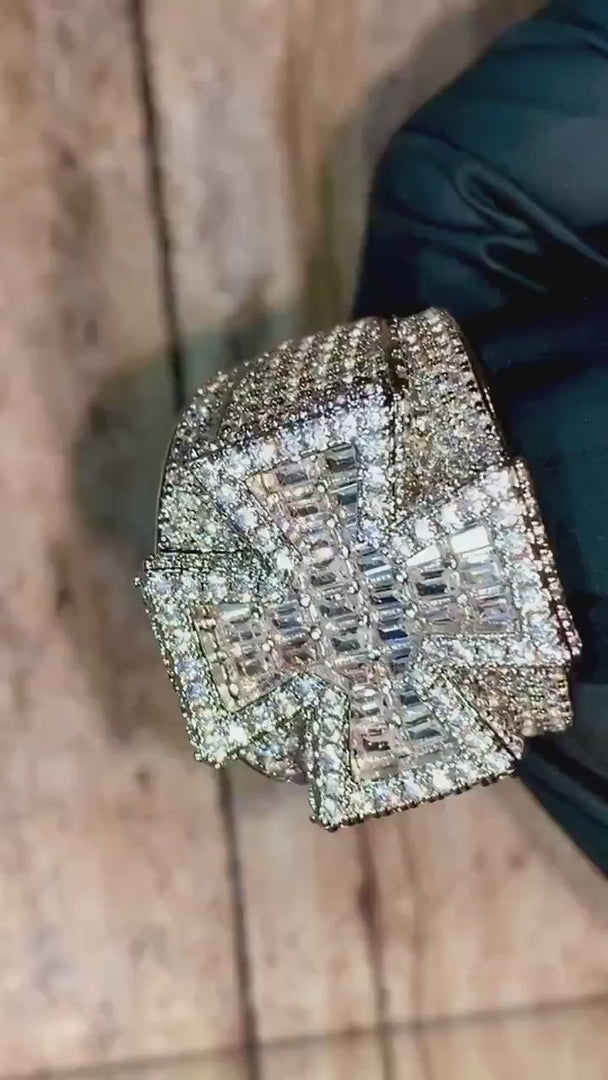 ✧ Big iced out ring with vvs Moissanite, which shine like real one.