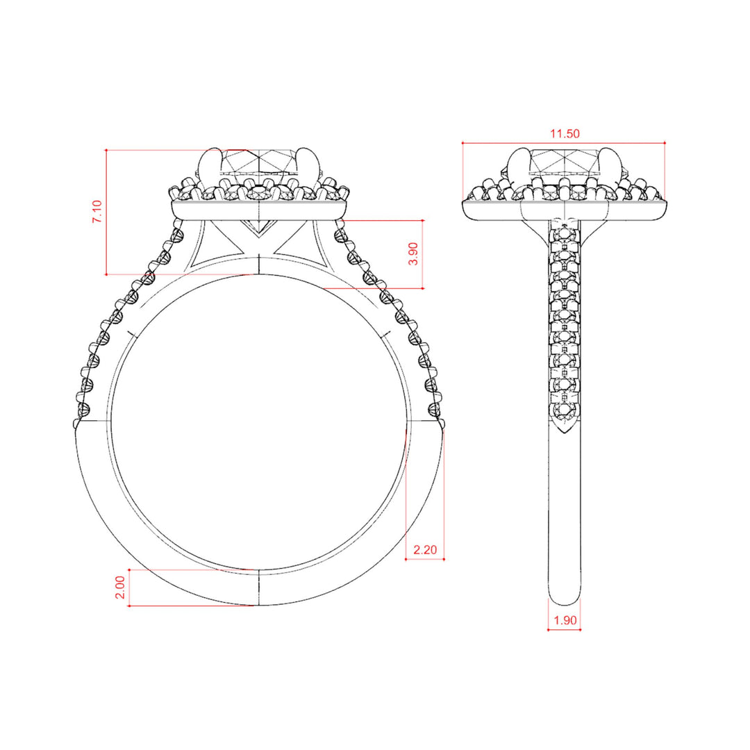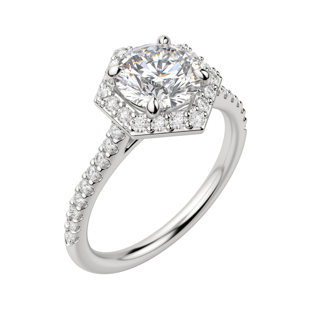 - Setting Style: Claw Prong Set Halo